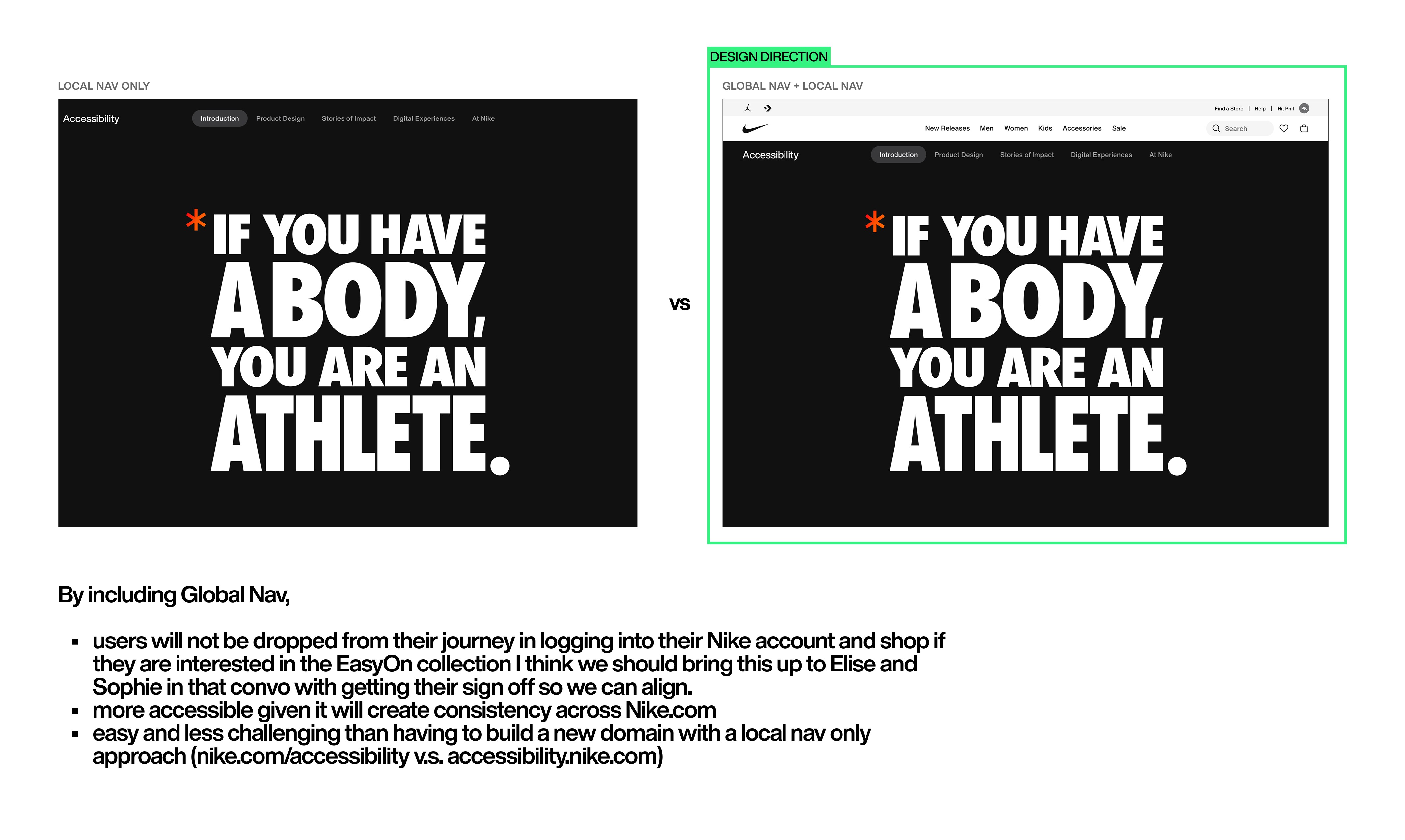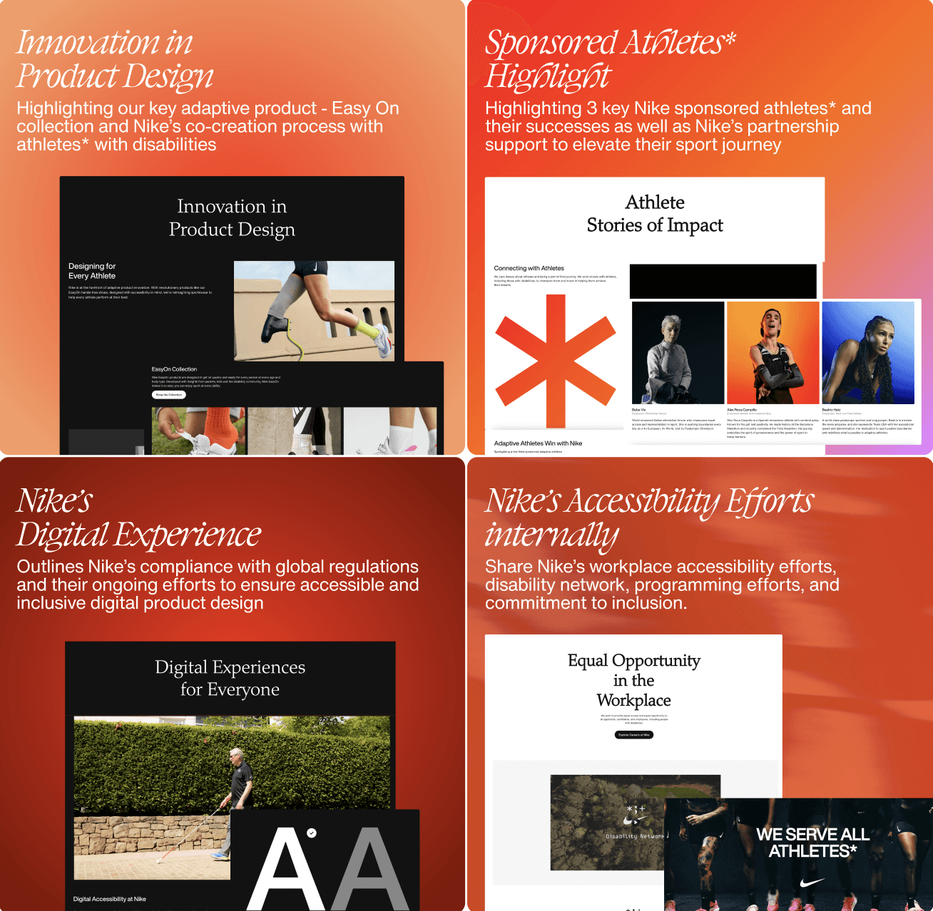 In the near future, while majority of the items are evergreen, we want to evolve and update the page with new content that Nike has been working on within the disability space.